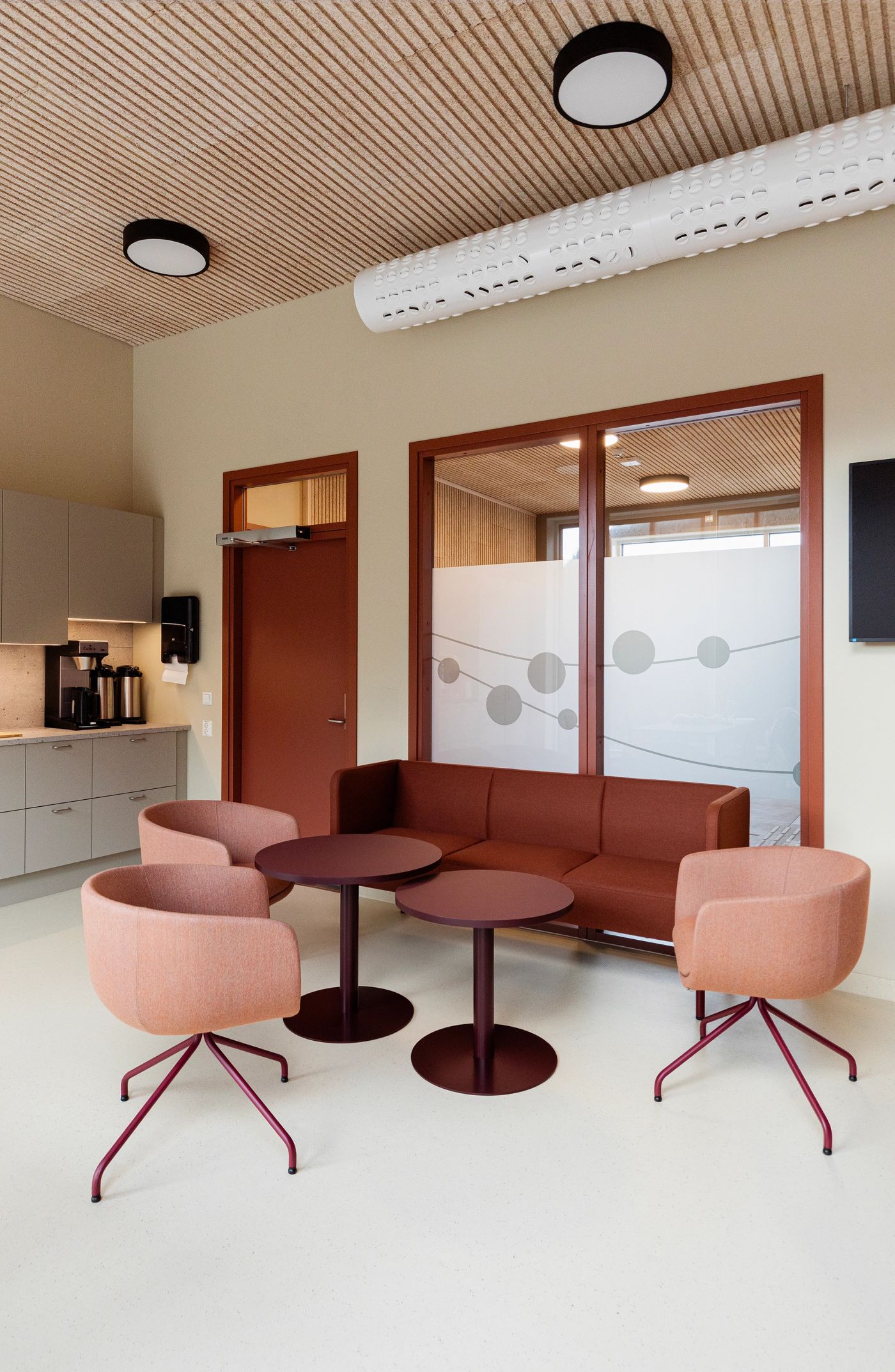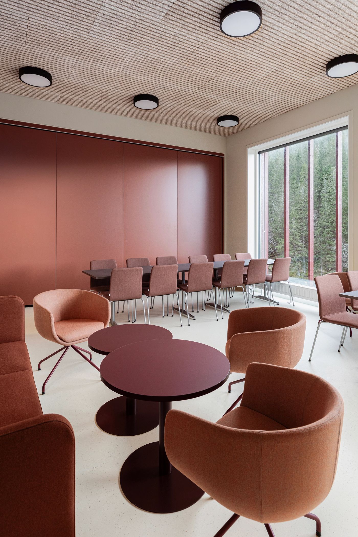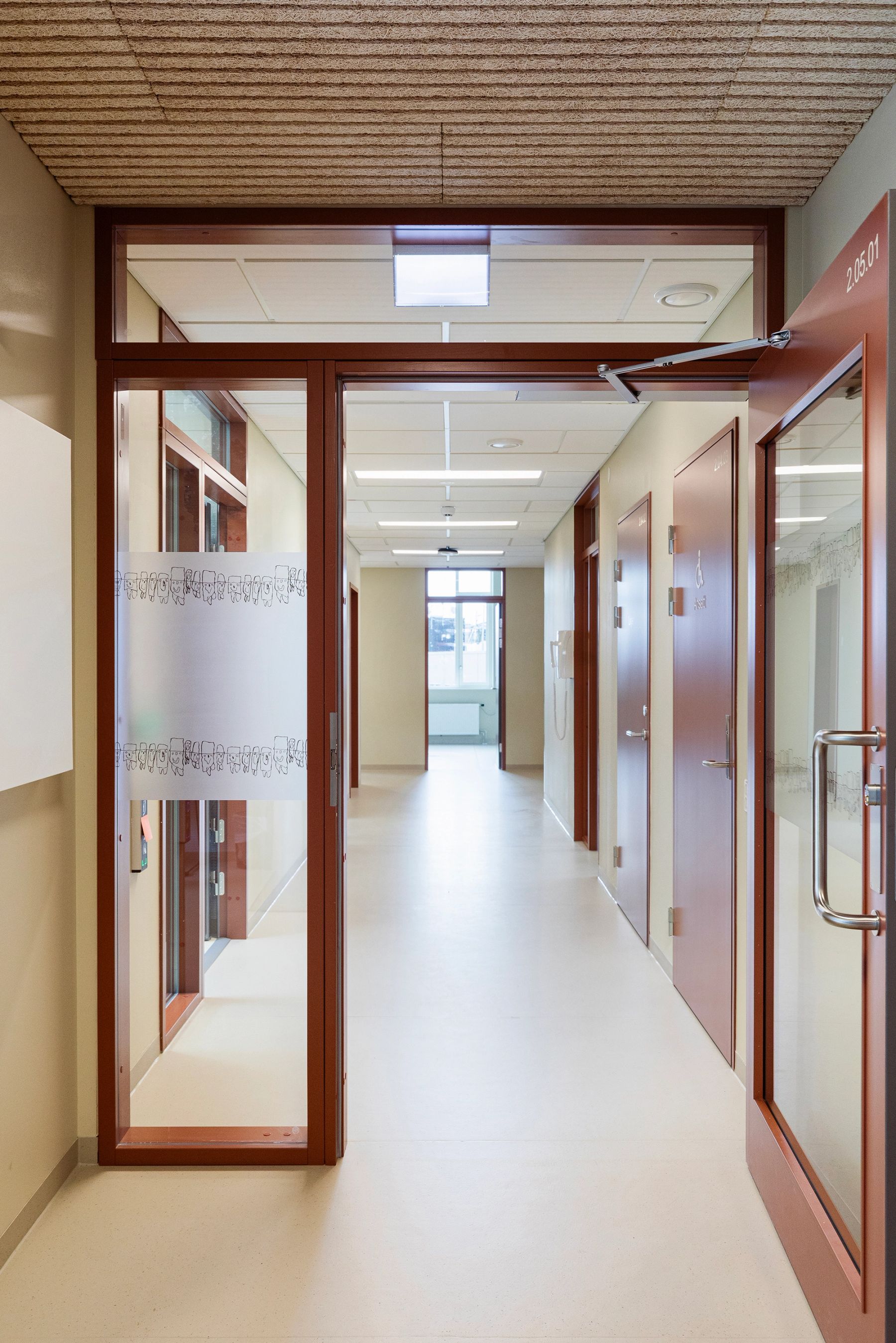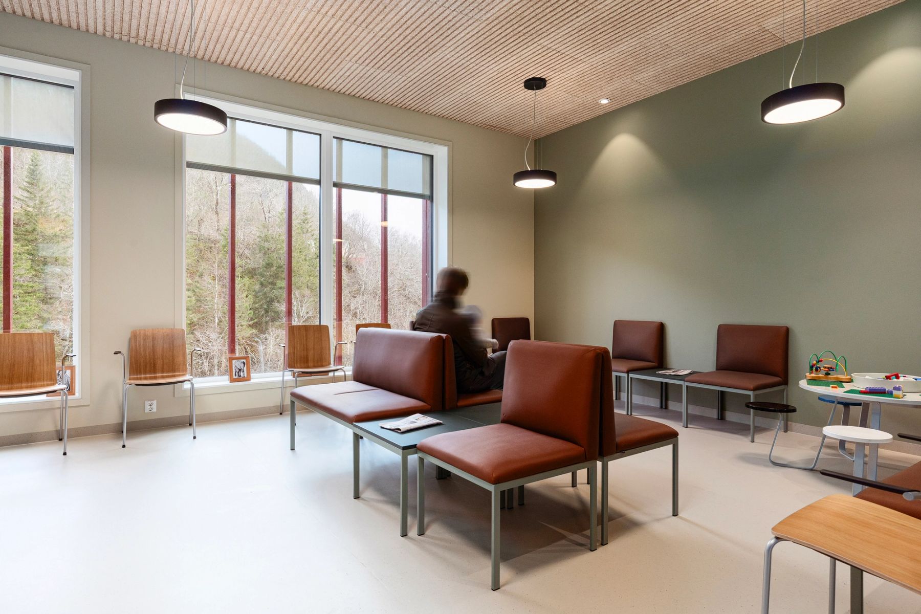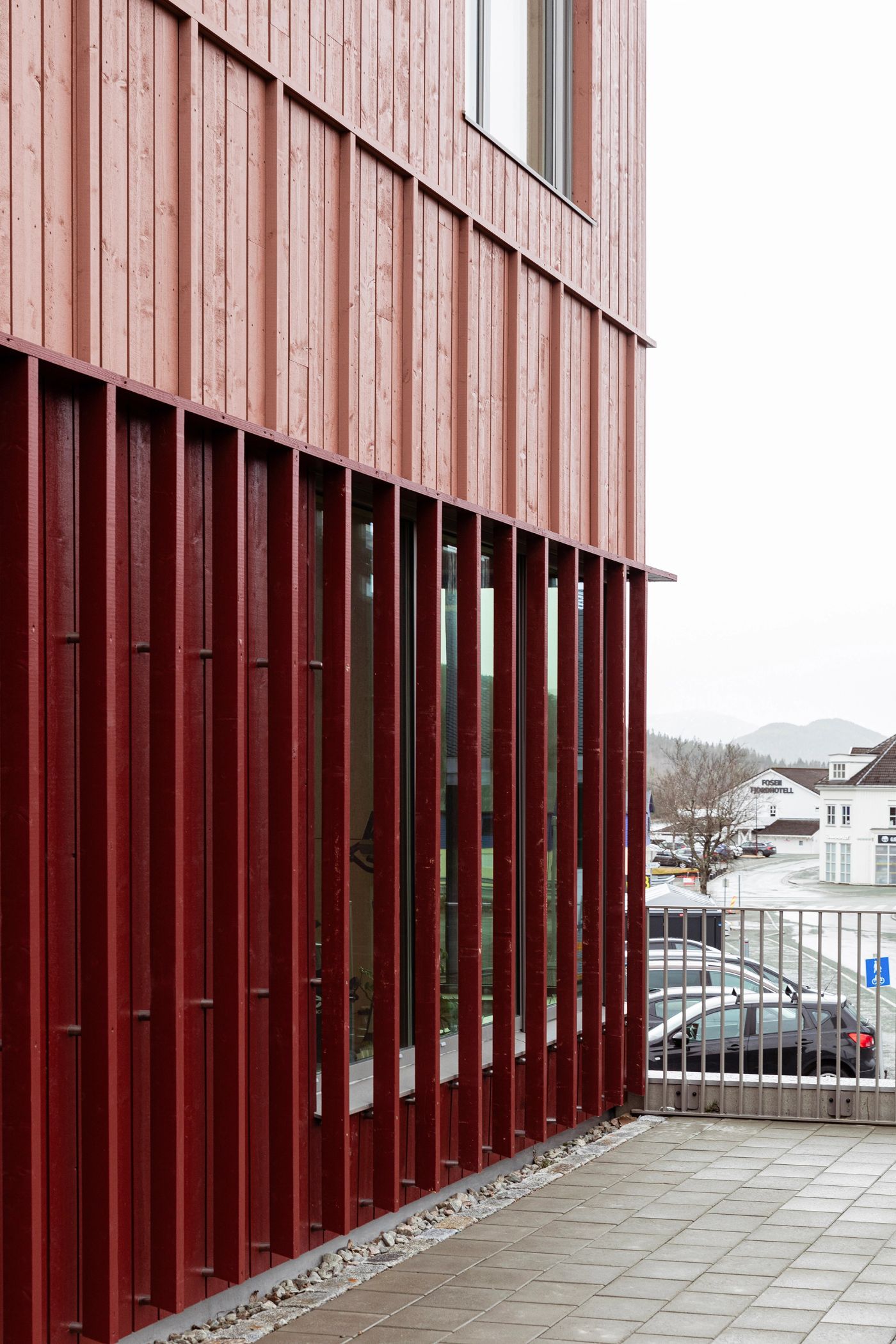 Nybygget har en U-form som åpner seg mot sentrum med et inviterende plassrom og en overdekket adkomstsone. Planløsningen i bygget er organisert med fokus på fleksibilitet, både når det gjelder organiseringen i bygget og størrelsen på leiearealene. Alt av fellesarealer ligger sentralt med tilknytning til hovedadkomsten og hovedkommunikasjonen. Volumoppbygningen bidrar til at man får leiearealer av ulik størrelse i de ulike etasjene. Foto: Sofie Brovold.