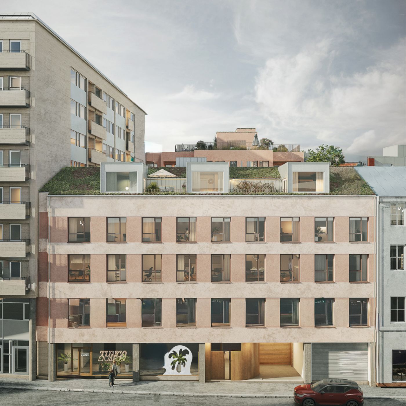 Prosjektet i Bjerregaards gate 2 på St. Hanshaugen er et transformasjonsprosjekt som tar utgangspunkt i et eksisterende næringsbygg fra 1960-tallet. PIR2 har utviklet et nytt prosjekt som både kompletterer kvartalsstrukturen og oppgraderer bygningsmassen til dagens standard. To nye boligbygg med til sammen 16 leiligheter, ett mot Bjerregaards gate og ett mot Waldemar Thranes gate, danner et helhetlig byrom med en felles takhage og grønne uterom for beboerne.