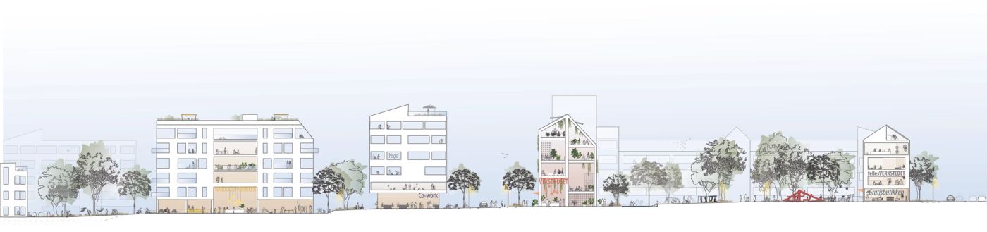 Hillevåg bydelssentrum i Stavanger er et område med en sterk industriell karakter og en tydelig historisk identitet som i dag er preget av store asfaltflater, lukkede fasader og mye bilisme. Dette området er nå i transformasjon, og har et stort potensiale til å bli en levende og attraktiv bydel for hele Stavanger. I forbindelse med den pågående områdereguleringen, ble vi invitert til å utvikle noen scenarier for hvordan «Down town Hillevåg» kan se ut i 2040!