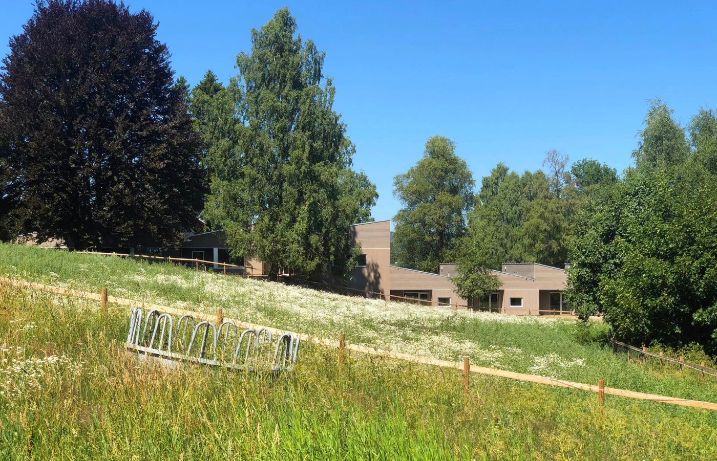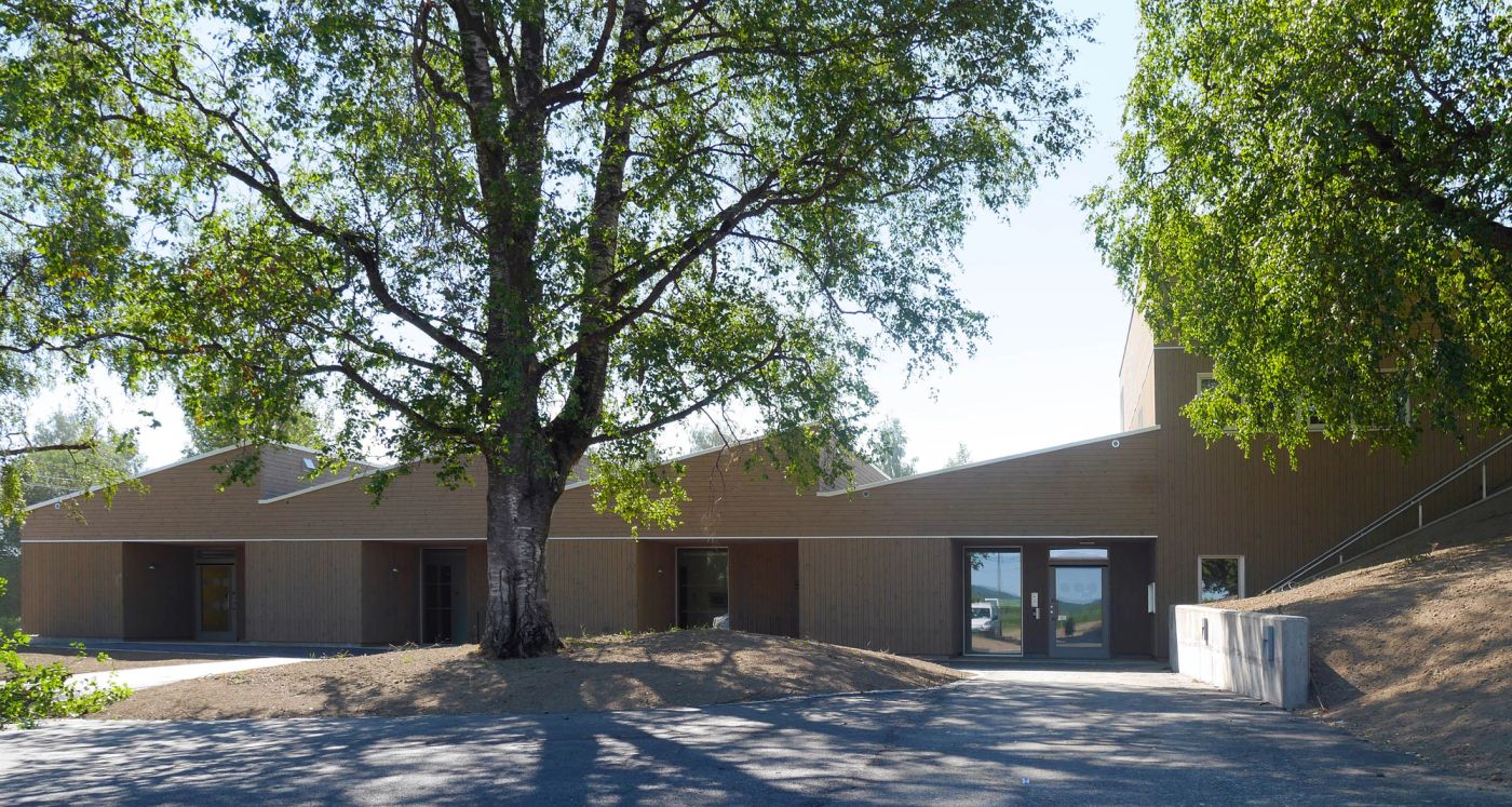 Tomten er preget av store bjørketrær og en høydeforskjell som skaper to nivåer utendørs. Bygget er lagt slik at eksisterende naturkvaliteter og trær bevares. En felles uteplass med pergola etableres omkring en eksisterende blodbøk og fremhever bøken som et tuntre. For å unngå følelse av en stor institusjon er bygget lagt på tvers av høydeforskjellen, med én avdeling i hver av de to etasjene og personalavdeling i mellom. I utformingen er det lagt vekt på bruk av naturlige materialer og hjemlige dimensjoner. Hver boenhet trer tydelig fram i uttrykket - dette reduserer skalaen og skaper en følelse av rekkehus.