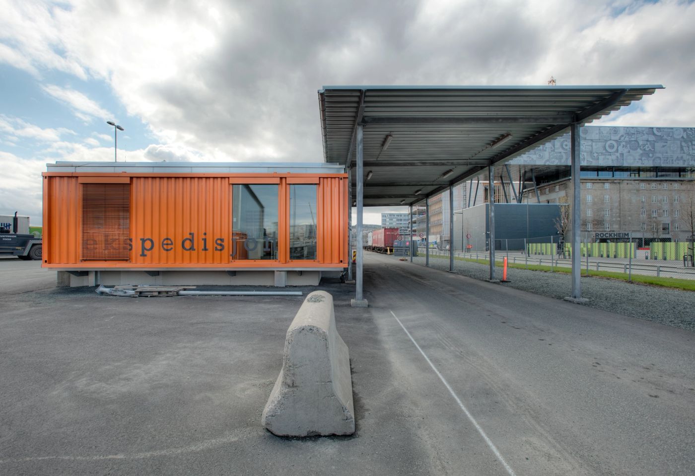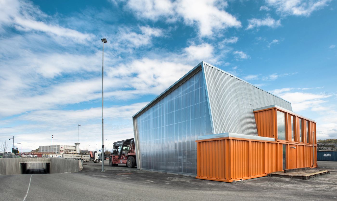 Ekspedisjonsbyggets 1. etasje er i sin helhet bygd opp av prefabrikerte moduler som monteres på en plasstøpt kjellermur. Ved å heve etasjen 0,9 m over bakkenivå, blir modulene liggende på samme høyde som containerne som enten lagres på utearealet eller er lagret på godsvogner eller semiflak.