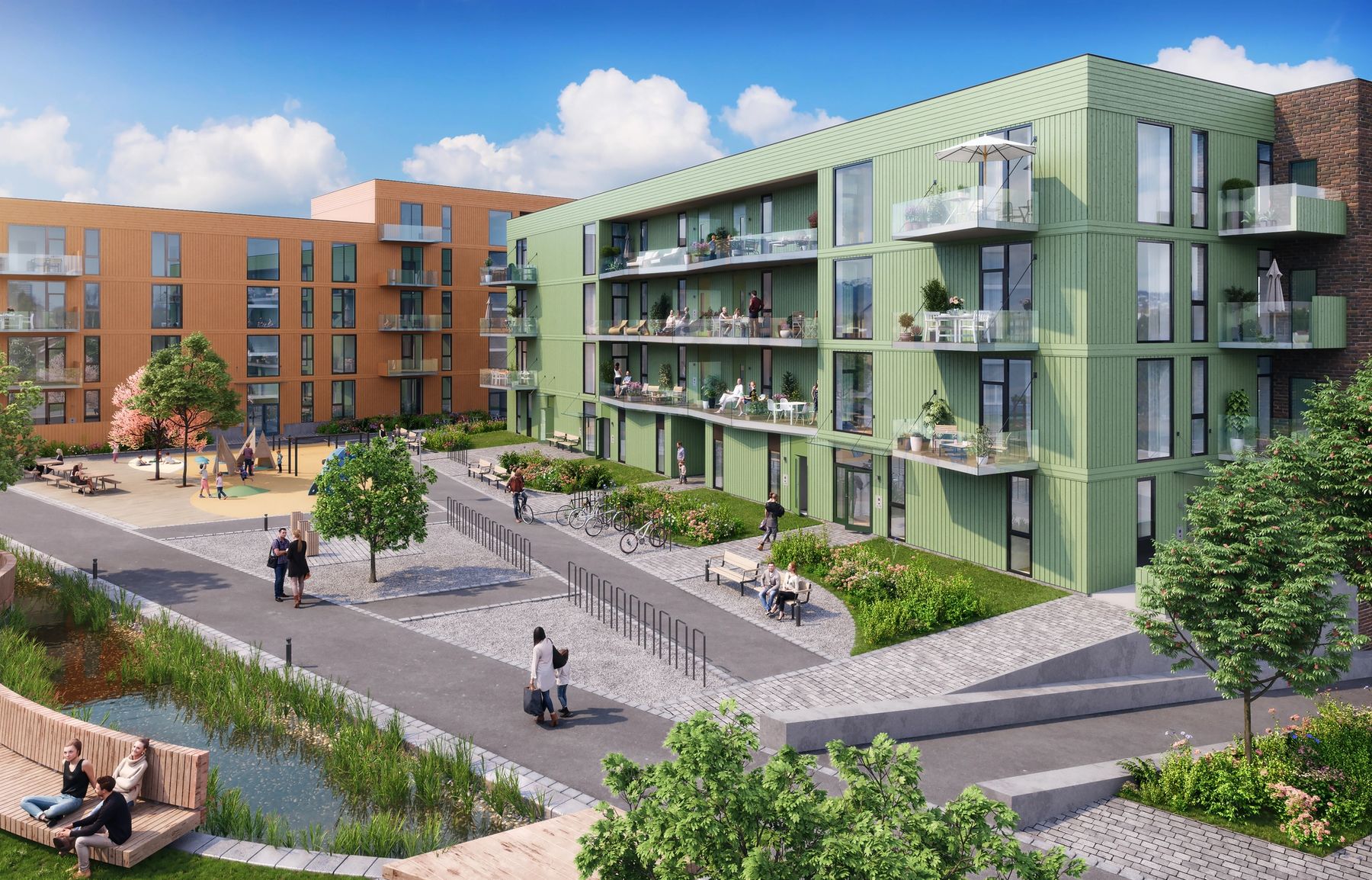 "Heimdal sag" består av nye boligblokker nært Heimdal sentrum, og omdanner et område fra industri til boliger.