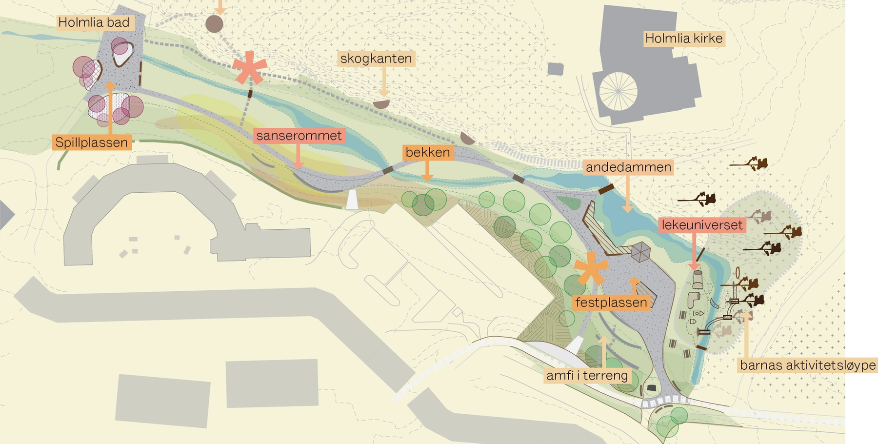 På oppdrag fra Oslo kommune ved Bymiljøetaten jobbet PIR2 i samarbeid med Light Bureu, EFLA og VSO med et forprosjekt med å utforme og utbedre Holmliaparken. Prosjektet er en del av Oslo Sør satsningen og har som mål å bygge en sammenhengende bypark med felles identitet for beboere ved Holmlia og lokalmiljøet for øvrig.