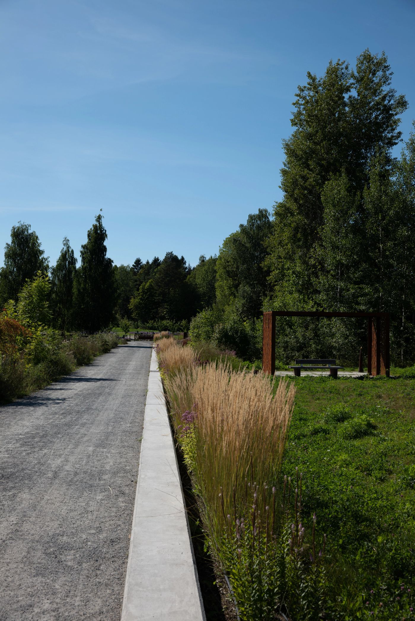 Vegetasjon i sirkler danner intime minnelunder og innbyr til en variert vandring for turgåere og besøkende. Flesteparten av den nyplantede vegetasjonen består av stedegne arter med lokal herkomst/frøkilde og de resterende prydplantene er valgt slik at de ikke utgjør spredningsrisiko for naturreservatene, men er til nytte for pollinerende insekter.
