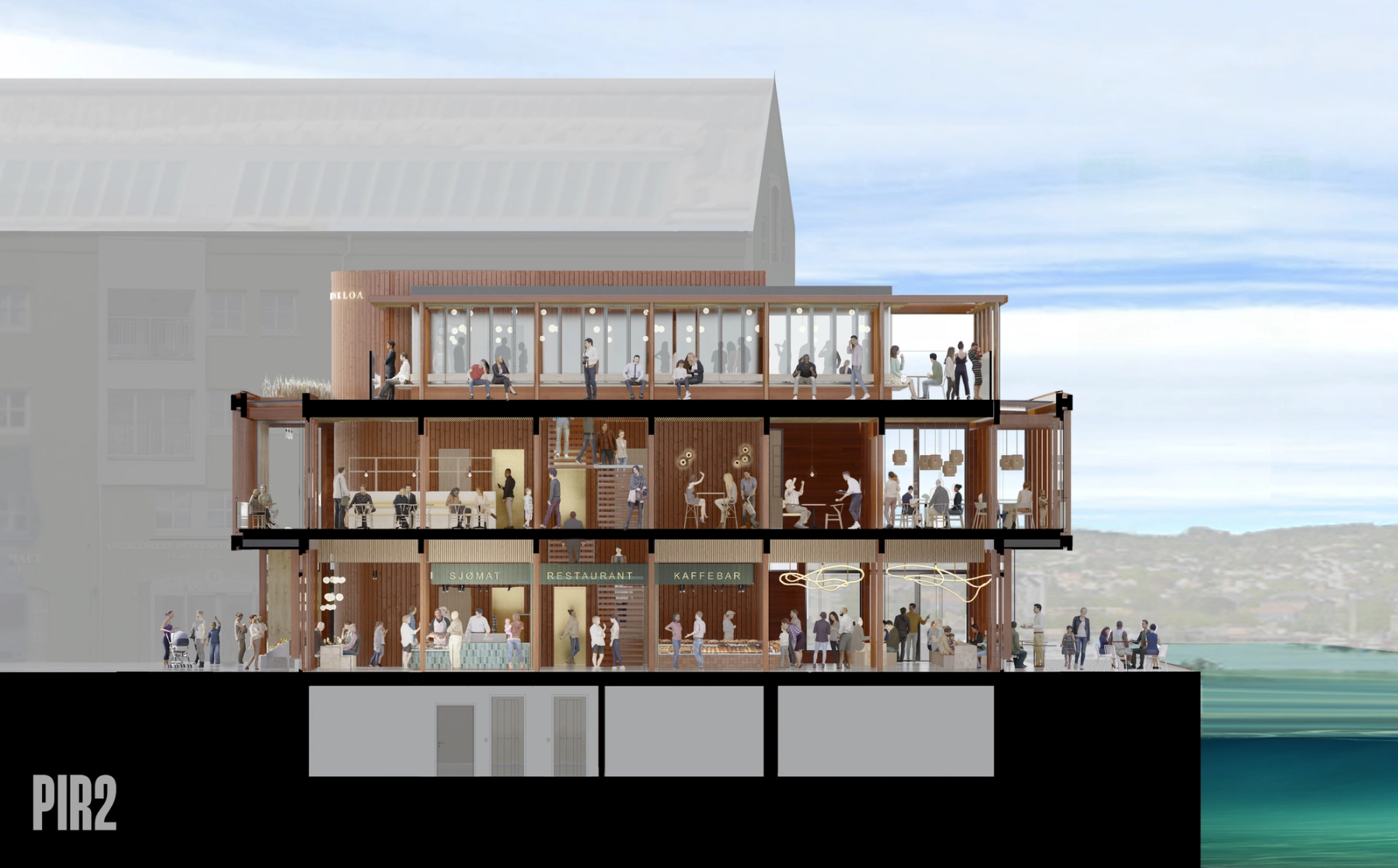 PIR2 har deltatt i et parallelloppdrag om ny fiskehall på Ravnkloa. Det skal etableres ny fiskehall i kombinasjon med et eller flere serveringssteder, og skissene fra PIR2 legger grunnlaget for videre planlegging.