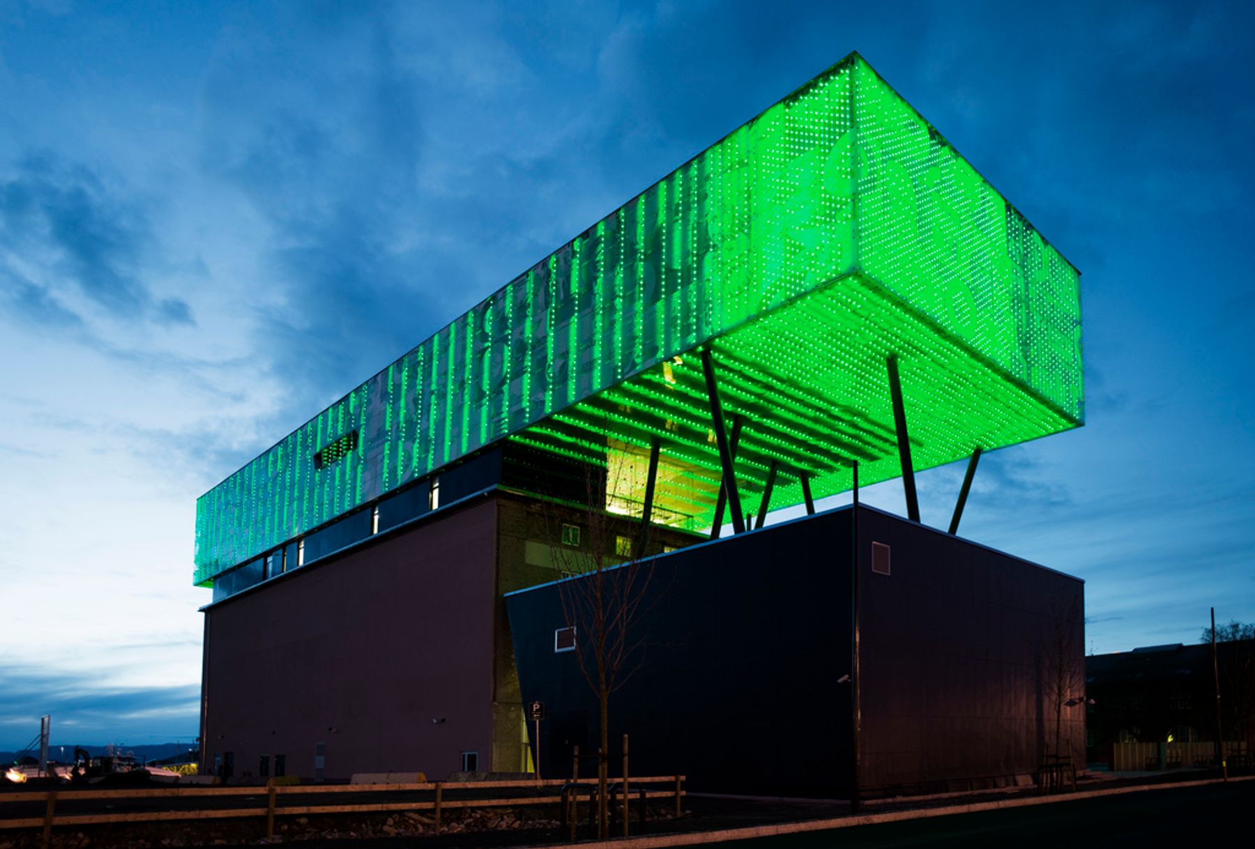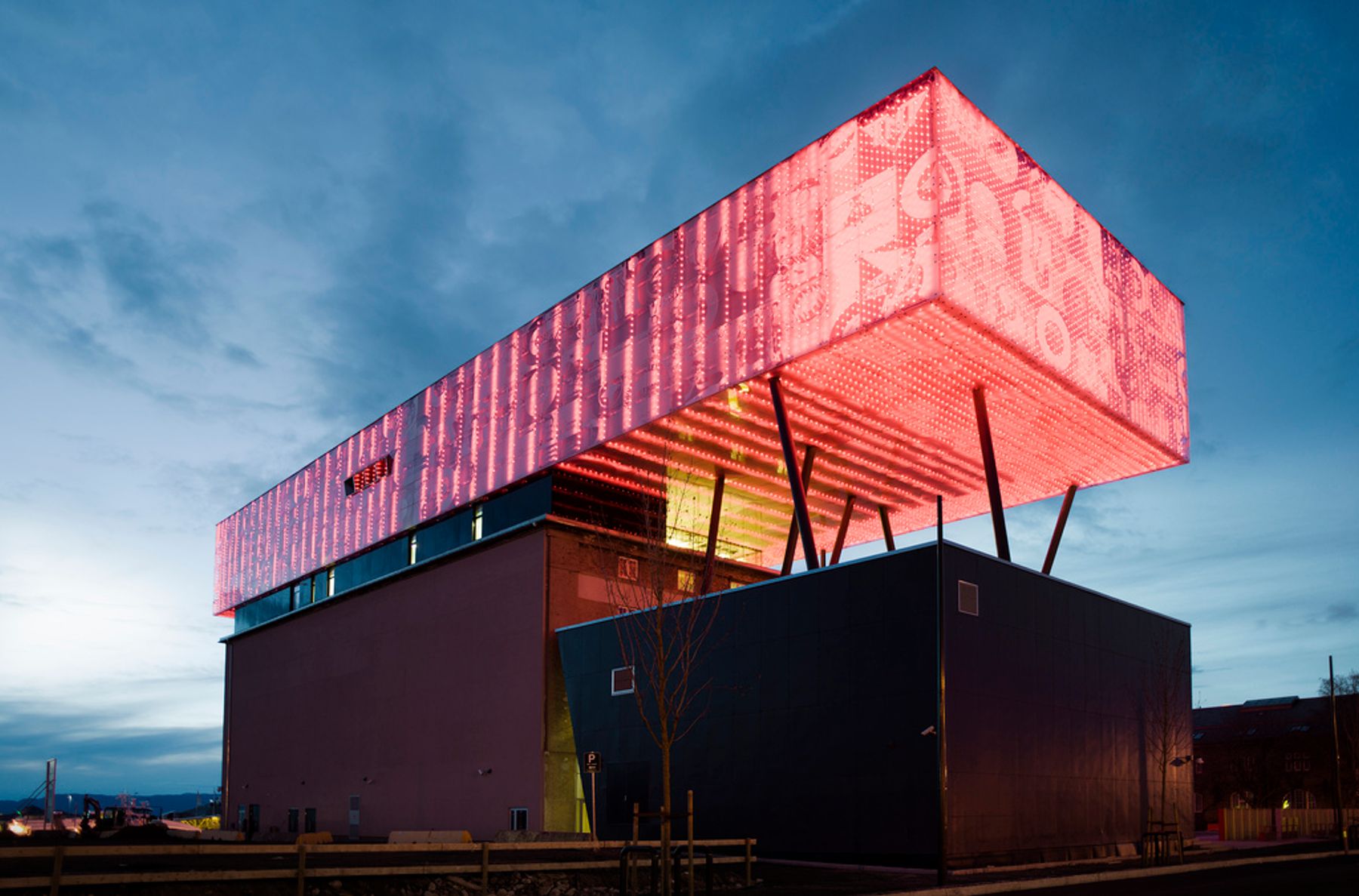 Rockheim museum for pop og rock har transformert Trondheims gamle mellager til en spennende vandring gjennom nytt og gammelt, fra kafé til musikksenter og konsertscene. Over taket svever en lysende boks som holder natta levende til daggry. Det er føyd til nye volumer til det gamle lagerbygget på havna i Trondheim med fokus på et tydelig skille mellom nye innslag og det verneverdige “Mellageret” fra 1920. I fasaden gjøres kun enkle inngrep, mens det innvendig gjennomføres større endringer.