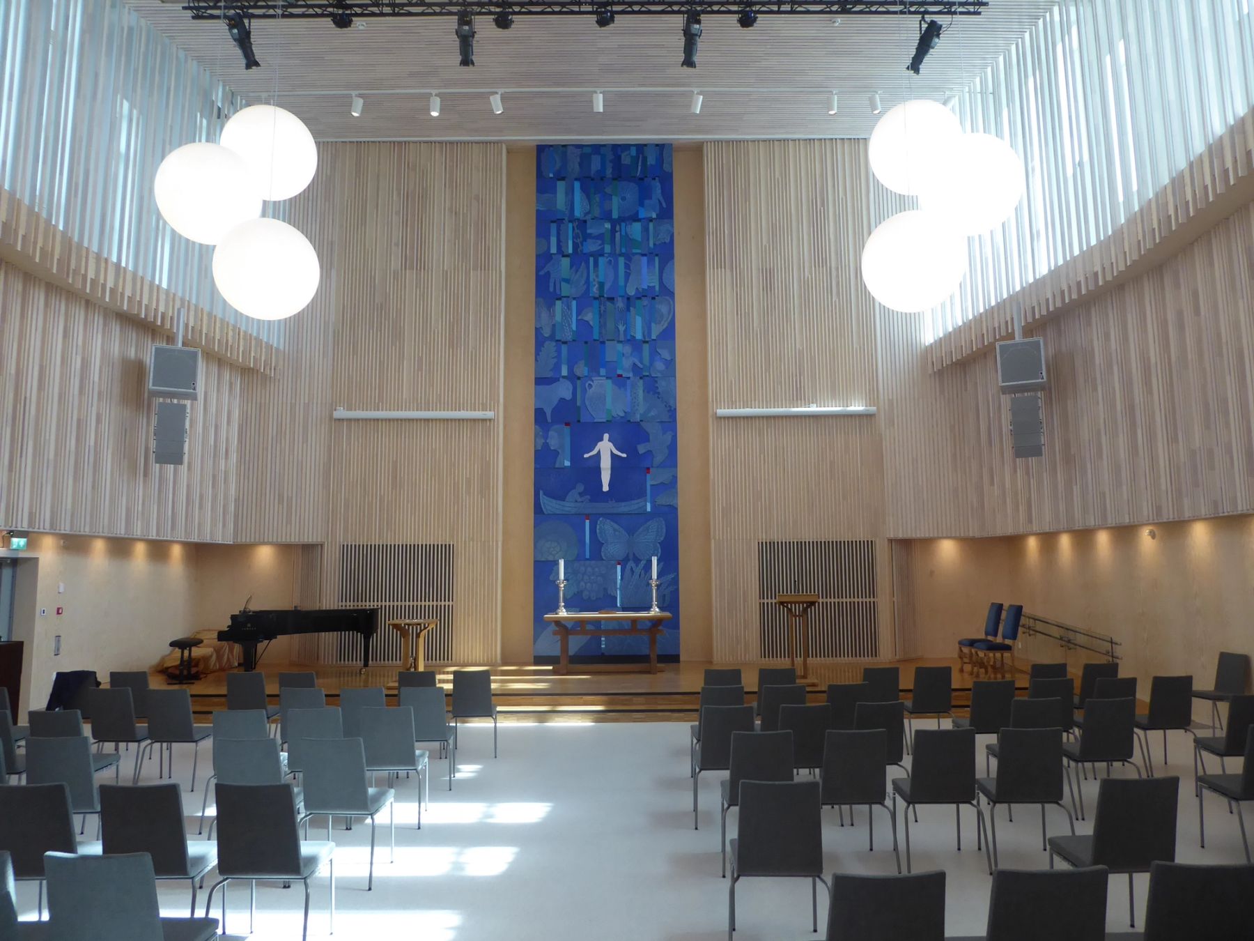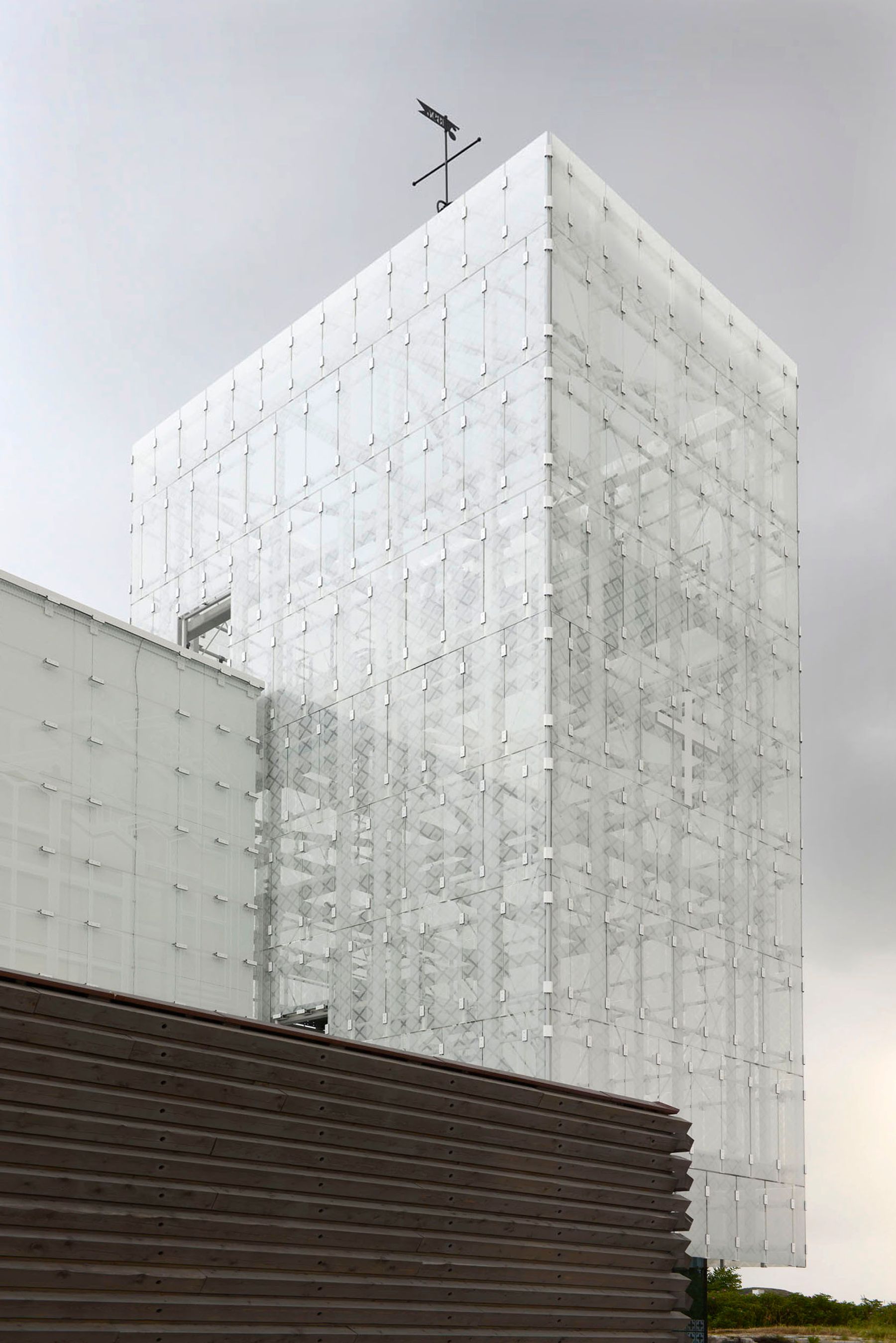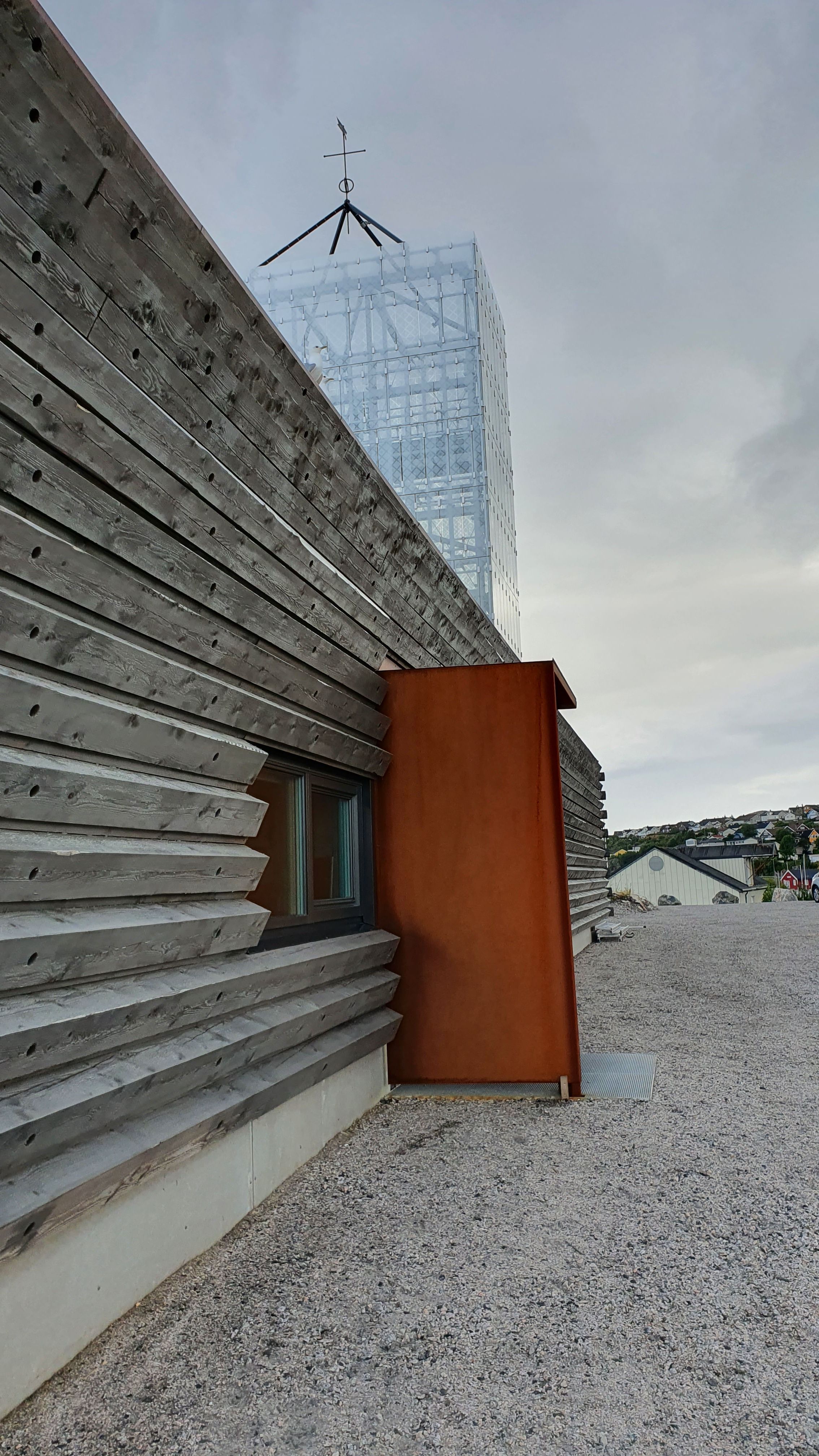 Etter brannen i 2012 har den nye kirken i Rørvik reist seg fra asken som en fugl føniks, en lysende lanterne oppført til glede for byens beboere. Den gamle kirken var enkel og dette er videreført i den nye kirken ved å velge lette, enkle og svevende løsninger med mye glass. Tårnets vertikale og kirkerommets horisontale glass gir ro, og det lysgjennomskinnelig trykket som lyssettes fra baksiden gjør at de hvite volumene skinner i mørket. I kontrast er byggets lavmælte, profane base oppført i tømmer. Kirkerommet har en fleksibel løsning med en flyttbar skillevegg inn mot aktivitetsrom, som gjør det mulig å ta imot opp til 450 personer. Rommet gjør at kirken er samlende, uansett livssyn, og fungerer som både en møteplass, et kulturhus og en konsertsal.