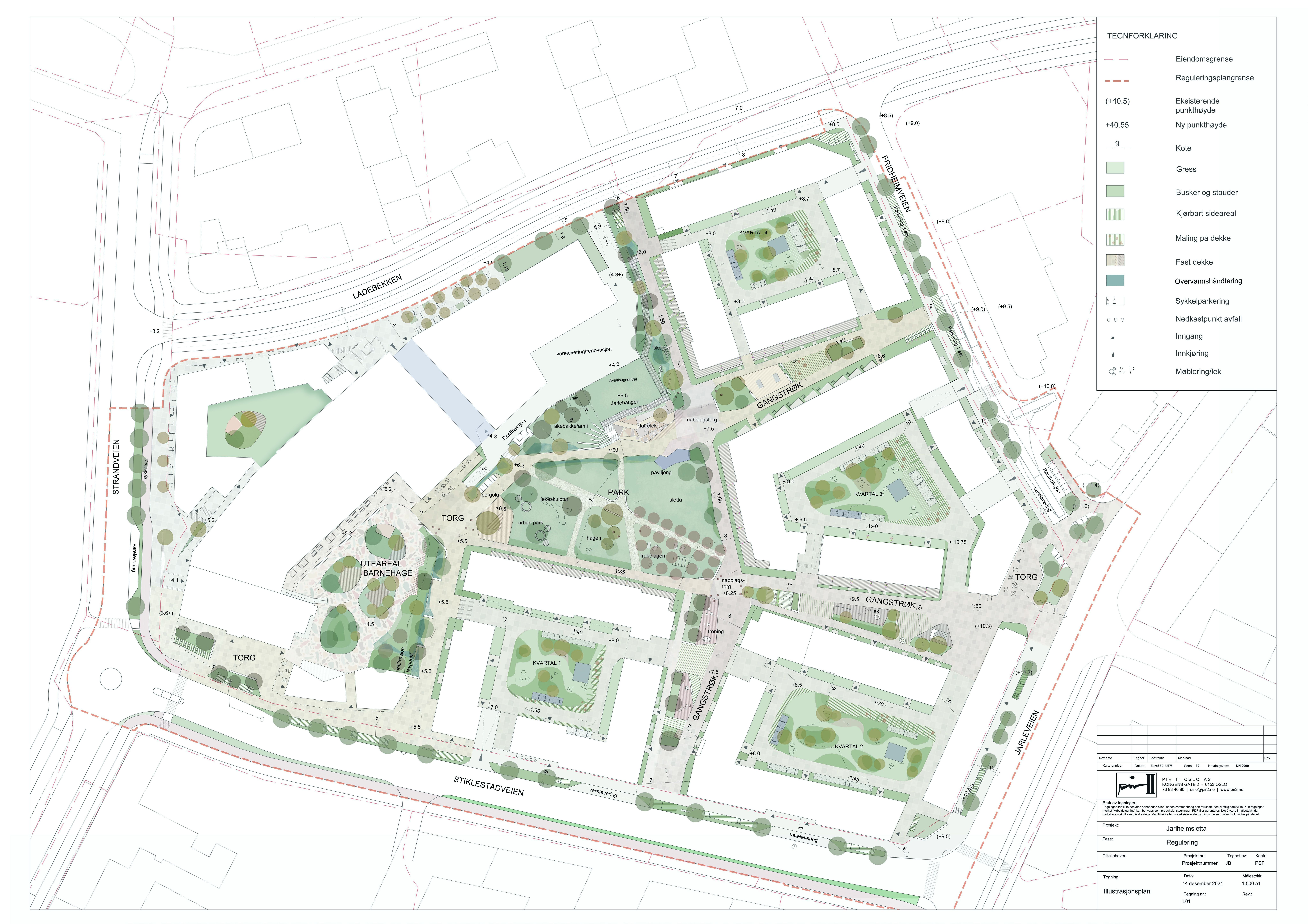 Prosjektet etablerer en kvartalsinndeling som tilpasser seg omkringliggende områder. Det planlegges en trinnvis utvikling med tilsvarende avvikling av leieforhold og riving. Det utarbeides ca.700 boliger i 4-5 nye kvartal der boligene får ulike størrelser og ligger rundt gårdsrom, gangstrøk og en frodig park. Det vil komme varierte leiligheter fra ettroms til femroms, og familievennlige leiligheter over to plan der noen har direkte utgang til privat hage i gårdsrommet.