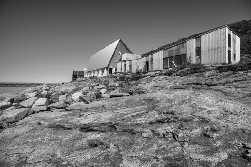 Strandbaren på Stokkøya ligger helt nede på stranden med utsikt mot Halten fyr, og er reist på fundamentet til en gammel betongfabrikk. Bygget skulle fungere som et felleshus for de 28 kysthusene på Hosnasand, men er nå blitt en svært populær restaurant både i lokalsamfunnet og for hele Midt-Norge. Styrende for prosjektet har vært å realisere et enkelt og solid bygg innenfor et ”next to nothing” budsjett. Det var derfor viktig å holde materialbruken på et nøkternt nivå; betong, glass og sitkagran fra egen skog.