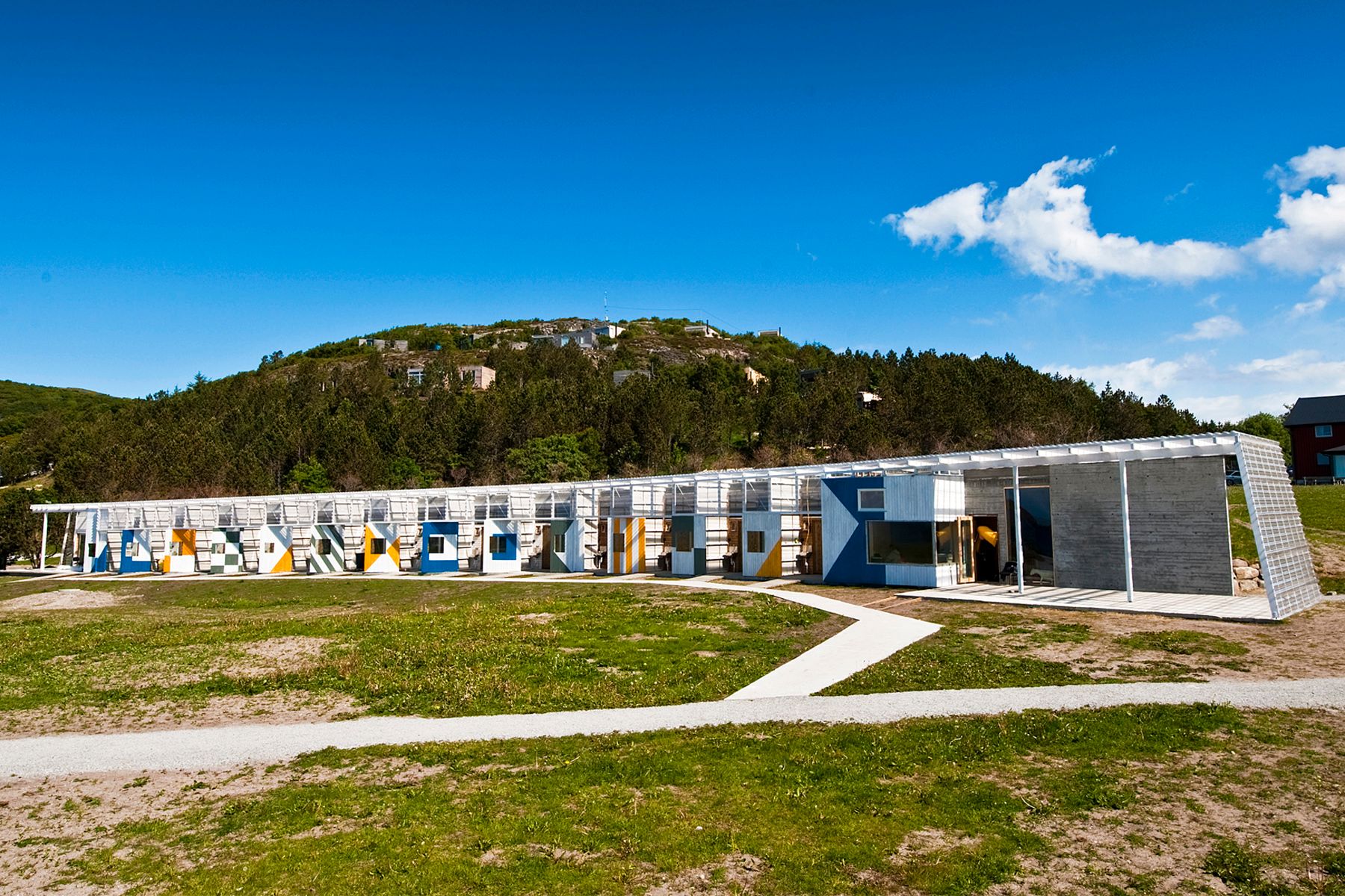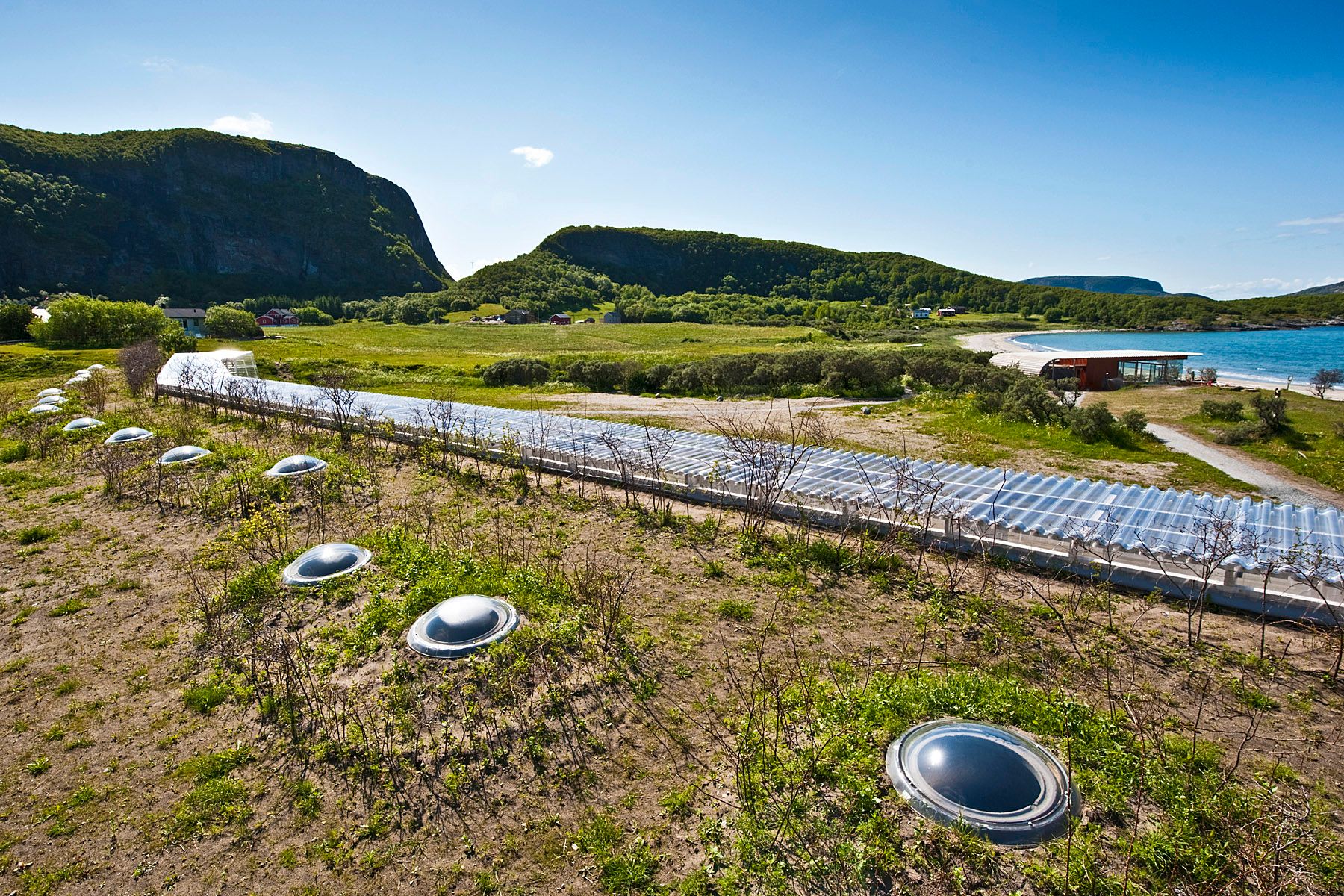Leilighetene er gravd inn i sandbanken for å dempe virkningene av inngrepet. Fra baksiden skrår terreng og vegetasjon opp over nesten hele bygningen. Naturlig lys slipper inn gjennom glasskupler i taket. I forkant har hver av leilighetene en veranda/vinterhage med lett, transparent tak og fasade, samt en flott utsikt mot havet. Prosjektet er gjennomført med et svært nøkternt budsjett.