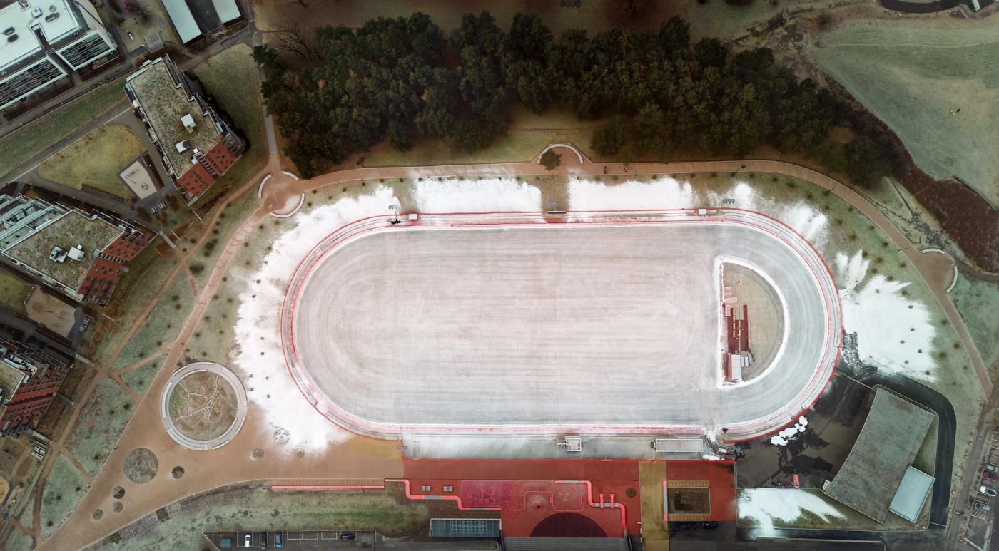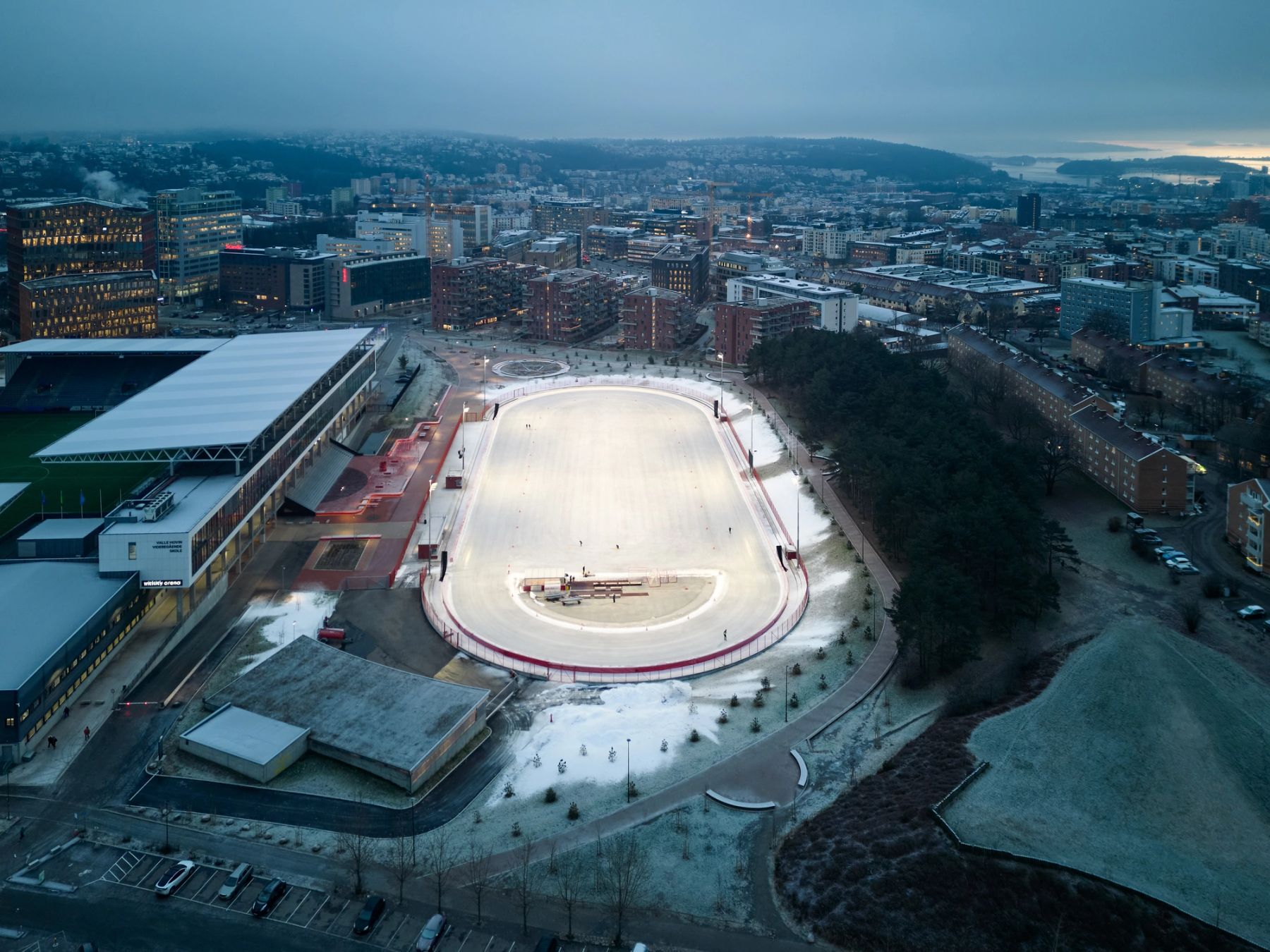 Nytt skøyte- og bandyanlegg på Valle Hovin i Oslo: et breddetilbud hvor besøkende i alle aldre kan komme og stå på skøyter. Den opprinnelige isbanen fra 1967 er revet og erstattet med ny isflate med tilhørende publikumsfasiliteter, driftsgarasje og teknisk anlegg. Anlegget ligger ved siden av Intility arena og Vallhall, og er en del av det store park- og idrettstilbudet i «den grønne ringen». Isflaten er på 10 700 m2, og inkluderer en 400 meter lang bane for hurtigløp på skøyter, samt en bandybane innenfor ovalen. Det nye tribuneanlegget har plass til 1 500 tilskuere. Skøyte- og bandybanen er et viktig tilskudd i byens kommunale aktivitetstilbud i nye Hovinbyen. Riktig overvannshåndtering og hensyn til biologisk mangfold har vært viktige premissgivere for anlegget. Samtidig skulle det også etableres et attraktivt aktivitetsanlegg mellom isbanen og Intility arena. Prosjektet er teknisk og konstruktivt forberedt for fremtidig etablering av hallbygning over isflaten.